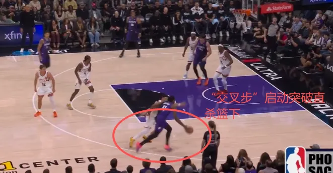 迂回至三分线后,趁防守阵型混乱立即启动突破直杀篮下,